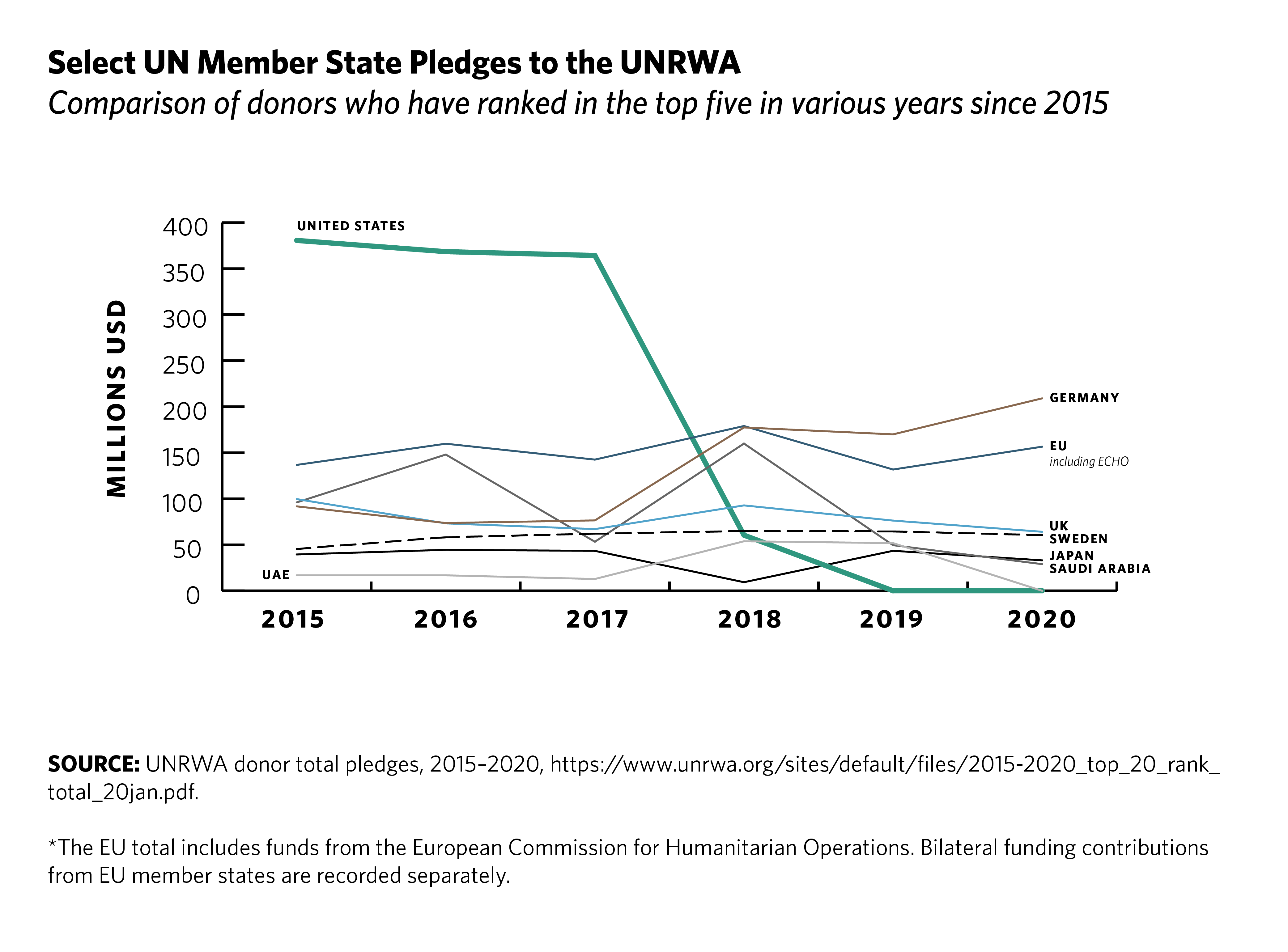 • Directly, and with other states, work to restore funding to the United Nations Relief and Works Agency (UNRWA) to ensure it is able to meet its historic commitment to Palestinian refugees until a durable solution to their statelessness is possible.